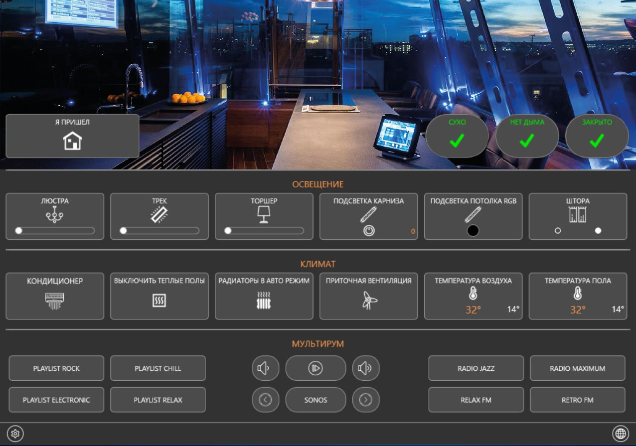 Используя интеграцию с передовыми системами Мультирум от ведущих игроков этого рынка (SONOS, BluOs, Yamaha) умный дом Softarc позволяет наслаждаться Вашей любимой музыкой и управлять ей автоматически или вручную из единого центра умного дома.